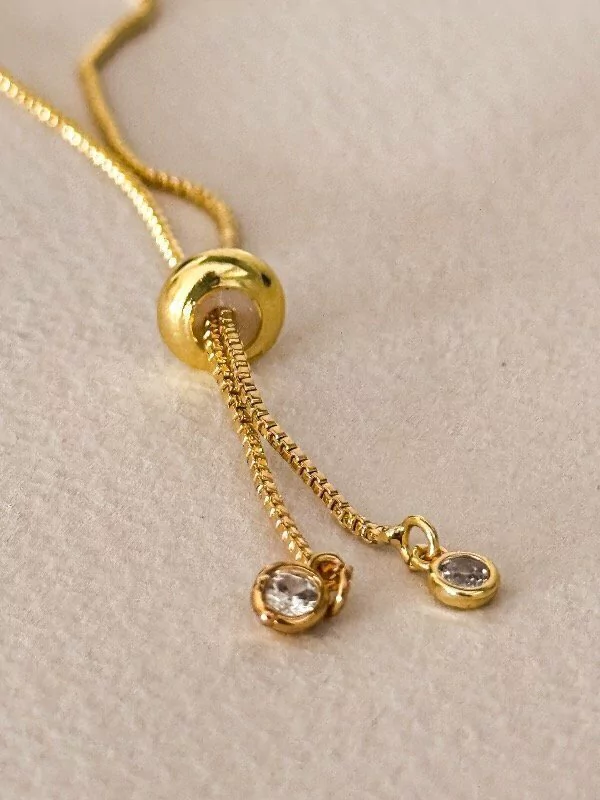 Pulsera finita conectora con dije bañada en oro 18 k. Cierre ajustable con detalle de zircon. Libre de niquel